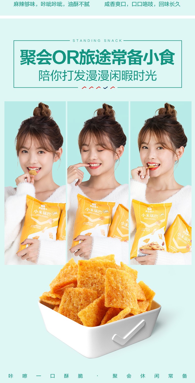 • 良品铺子 小米锅巴90g 粗粮杂粮饼干零食 麻辣味五香味饼干膨化零食休闲小吃 麻辣味